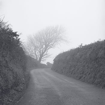 #1529 Tree at Curve in Road from Intersection, St. Mawes, March 17, 1997, PM, Cornwall, England