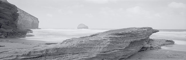 #1537 Trebarwith Strand with Stone Slab Framing Sea Stack, March 19, 1997, AM, Cornwall, England