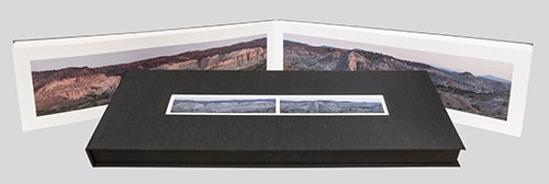 The book is printed and crafted in our studio using the Epson 9880 using Epson K - 3 inks with Vivid Magenta on Hahnemuhle Photo Rag 308. The accordion book components are fabricated using 100% rag mat board for the book’s binding boards and clamshell box. The adhesives are Bienfang Color Mount and PVA glue. The mat board is covered with "Mohair," a book binding fabric produced by World Cloth Co. Ltd. Japan.