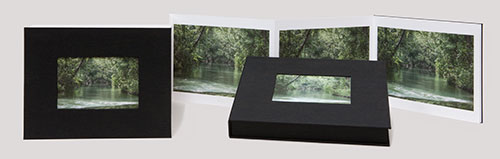 The book is printed and crafted in our studio using the Epson 9880 using Epson K - 3 inks with Vivid Magenta on Hahnemuhle Photo Rag 308. The accordion book components are fabricated using 100% rag mat board for the book’s binding boards and clamshell box. The adhesives are Bienfang Color Mount and PVA glue. The mat board is covered with "Mohair," a book binding fabric produced by World Cloth Co. Ltd. Japan.